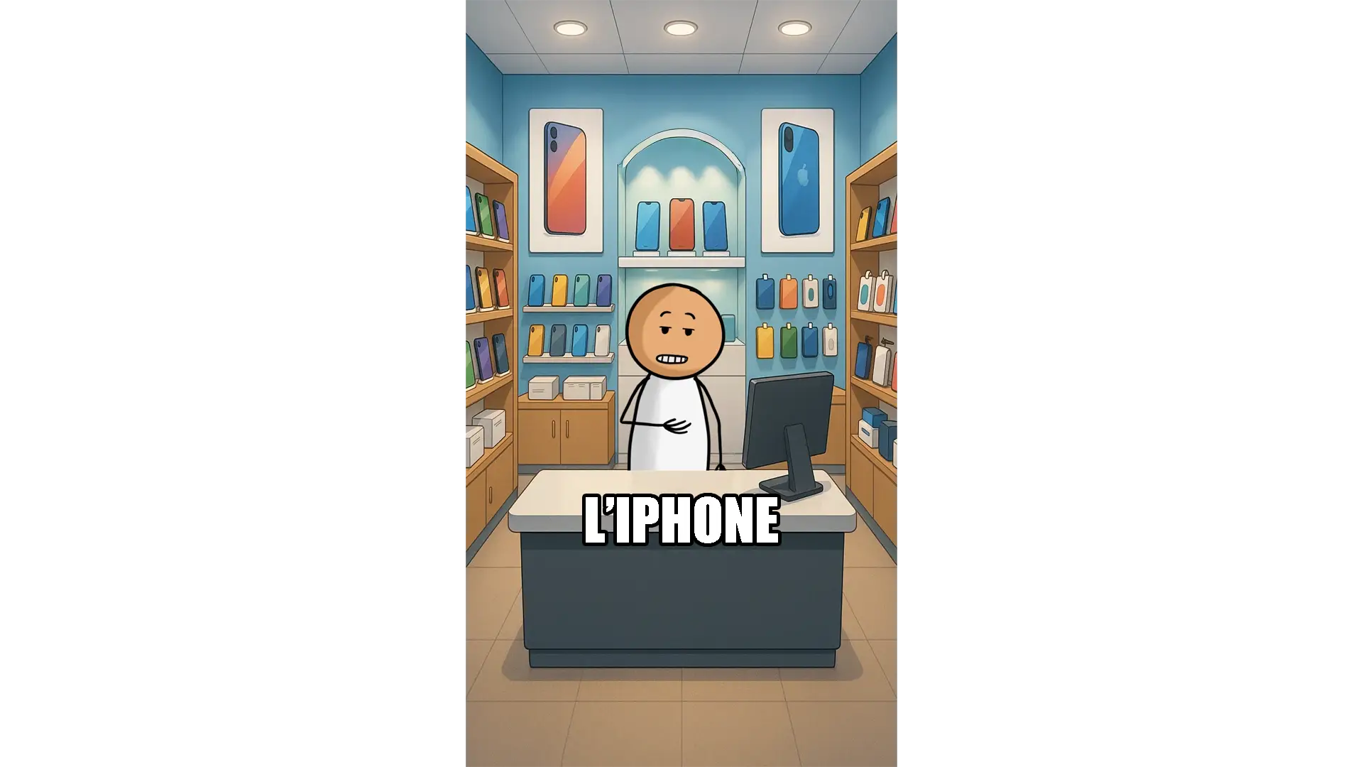 Un sketch animé absurde avec un client qui attend désespérément son café et son cookie, pendant que le barista se bat avec la technologie…